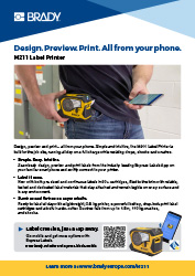 Design, forhåndsvisning og utskrift - alt fra telefonen din. M211 er enkel og intuitiv i bruk og er konstruert for å brukes på stedet. Den kan brukes en hel dag på én lading og tåler fall, støt og press. Aldri før har en bærbar skriver på grunnivå kombinert alt dette i én enkelt, banebrytende enhet.