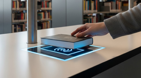 RFID-etiketter og -tags muliggjør sporing av bøker eller utstyr og et automatisert utlånssystem.