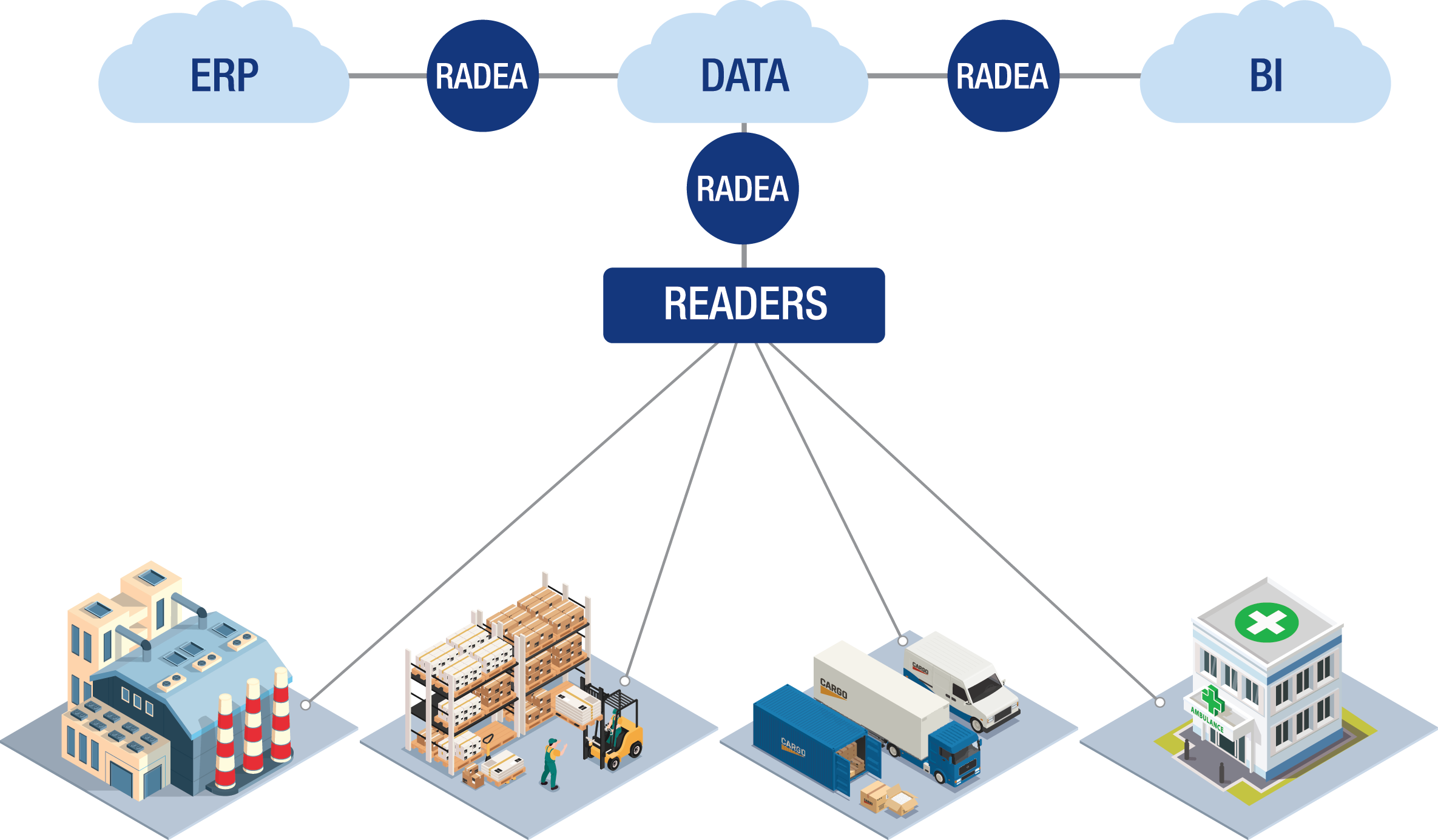 RADEA.IO er en hjørnestein for automatisert sporing av lagerbeholdning og varer. Sammen med RFID-lesere og -etiketter inngår den i et sømløst og prisgunstig teknologisk økosystem som kan tilpasses behovene til enhver virksomhet. Liten, mellomstor og stor.