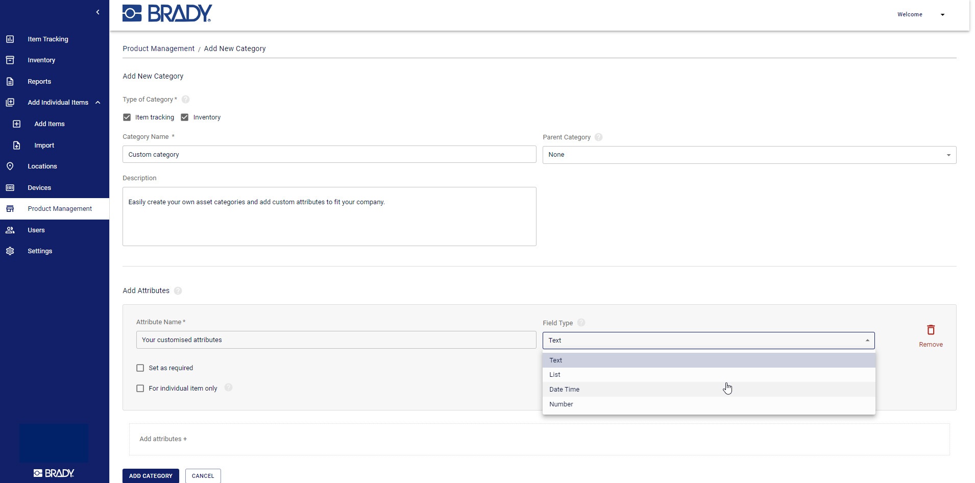 Det er enkelt å importere eksisterende data og konfigurere produkt-, ressurs- og varekategorier, varebetingelser og plasseringer som samsvarer med faste RFID-lesere. Når dataetikettene er lagt inn, vises de i rullegardinmenyer for hver kategori, noe som gjør oppsettet enda raskere.