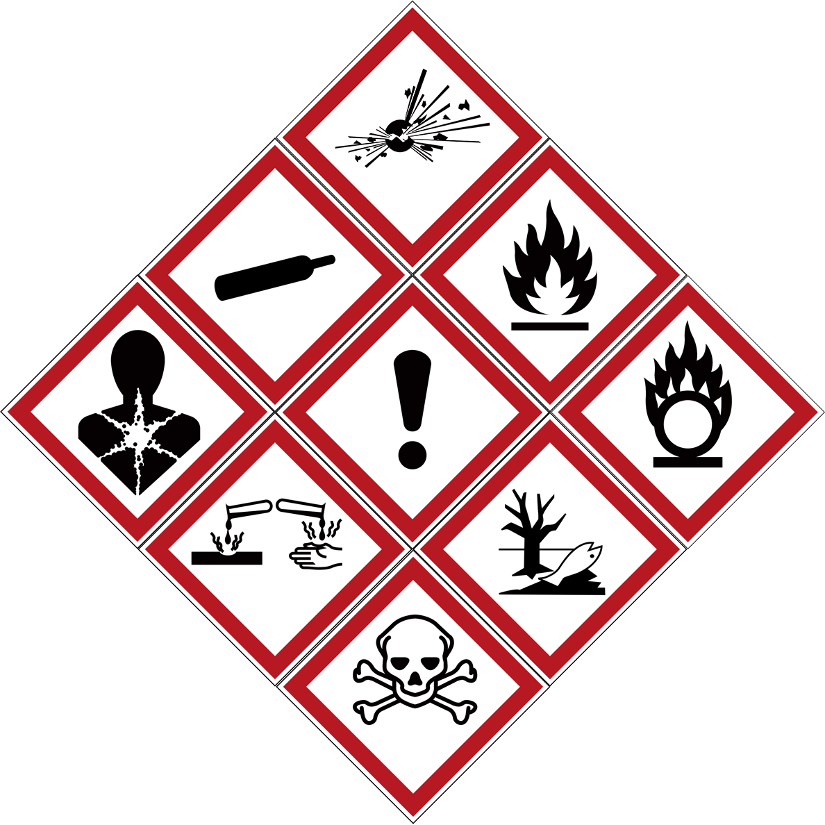 EU krever at farlige stoffer er merket med relevante GHS/CLP-symboler for å kunne identifisere farlige stoffer og informere brukerne om risikoen. Andre relevante symboler kan også påføres, som ISO 7010-advarselssymbol for varm overflate. Relevante symboler skal samles på én side og vises på gul sikkerhetsfargebakgrunn.