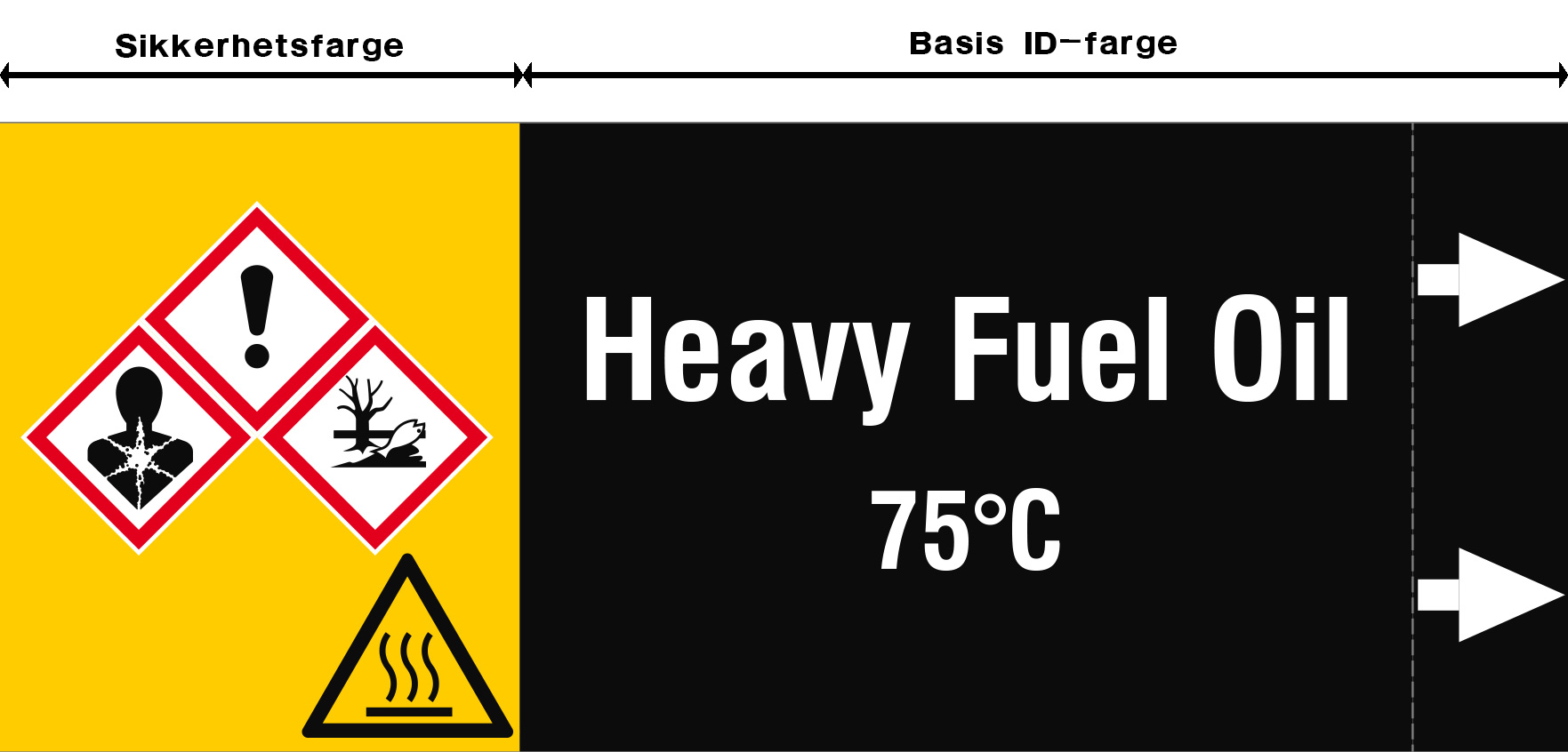 Stil A(360)-Y: Rørmerke med basis ID-farge + gul sikkerhetsfarge.