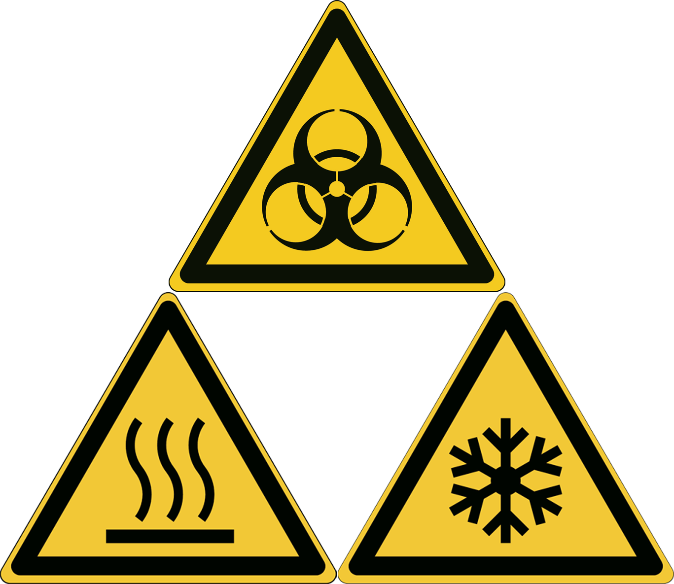 - sikkerhetsfarge, for å synliggjøre økt risiko, ved hjelp av GHS/CLP- eller ISO 7010-advarselsskilt.